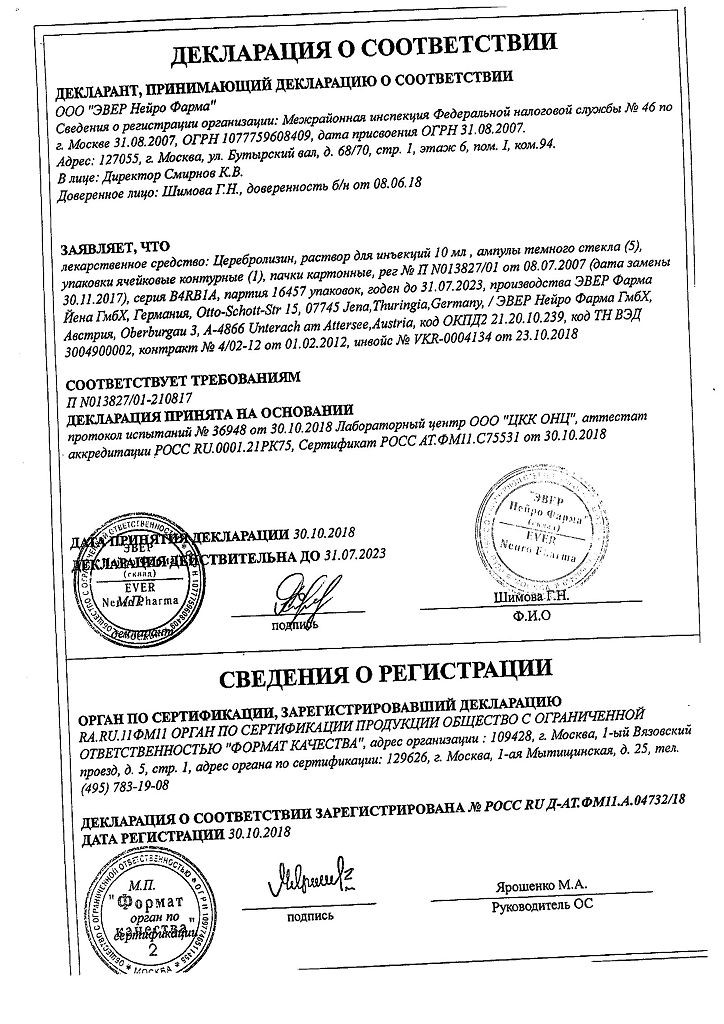 Прежде чем купить Церебролизин в ближайшей аптеке, нужно обязательно проконсультироваться с врачом. Самолечение опасно для Вашего здоровья.