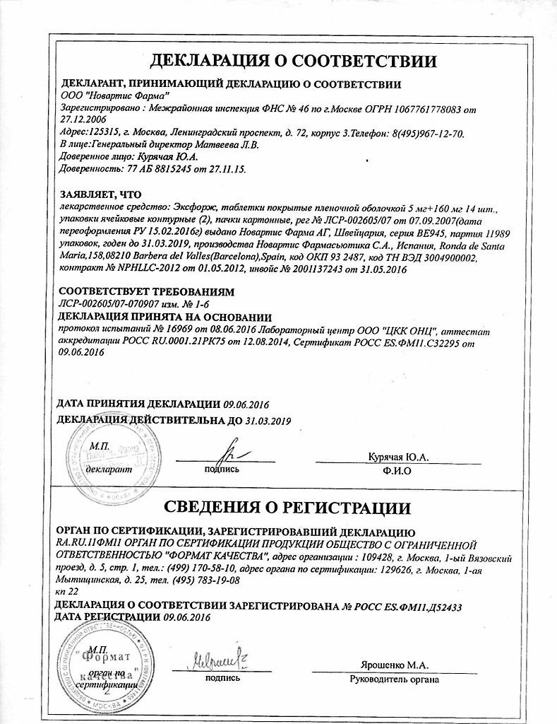 Прежде чем купить Эксфорж таблетки в ближайшей аптеке, нужно обязательно проконсультироваться с врачом. Самолечение опасно для Вашего здоровья.