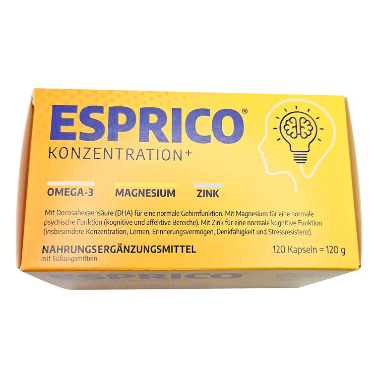 Эсприко — пищевой/диетический продукт (БАД), созданный для нутритивной поддержки функций, связанных с вниманием и умственной работоспособностью. Формула сочетает омега-жирные кислоты (из рыбьего жира и масла вечерней примулы) и минералы (магний, цинк).