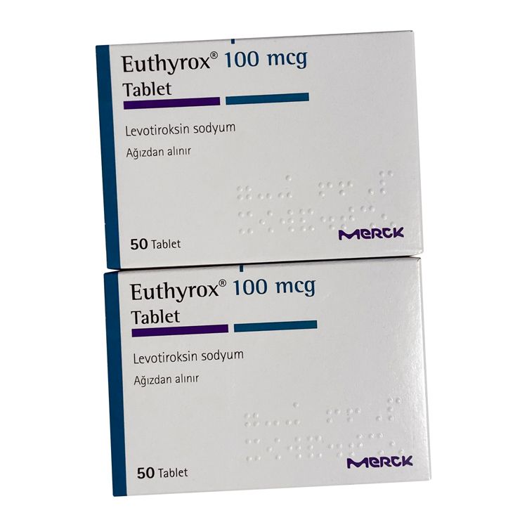 Препарат поставляется в картонную пачку белого цвета с синими и фиолетовыми элементами дизайна. На упаковке указано название "Euthyrox", дозировка, действующее вещество, и отмечено, что лекарство предназначено для перорального применения ("Ağızdan alınır"). В каждой упаковке содержится 100 таблеток. На упаковке также имеется маркировка компании-производителя Merck. Внутри упаковки находятся блистеры с таблетками и инструкция по применению.
