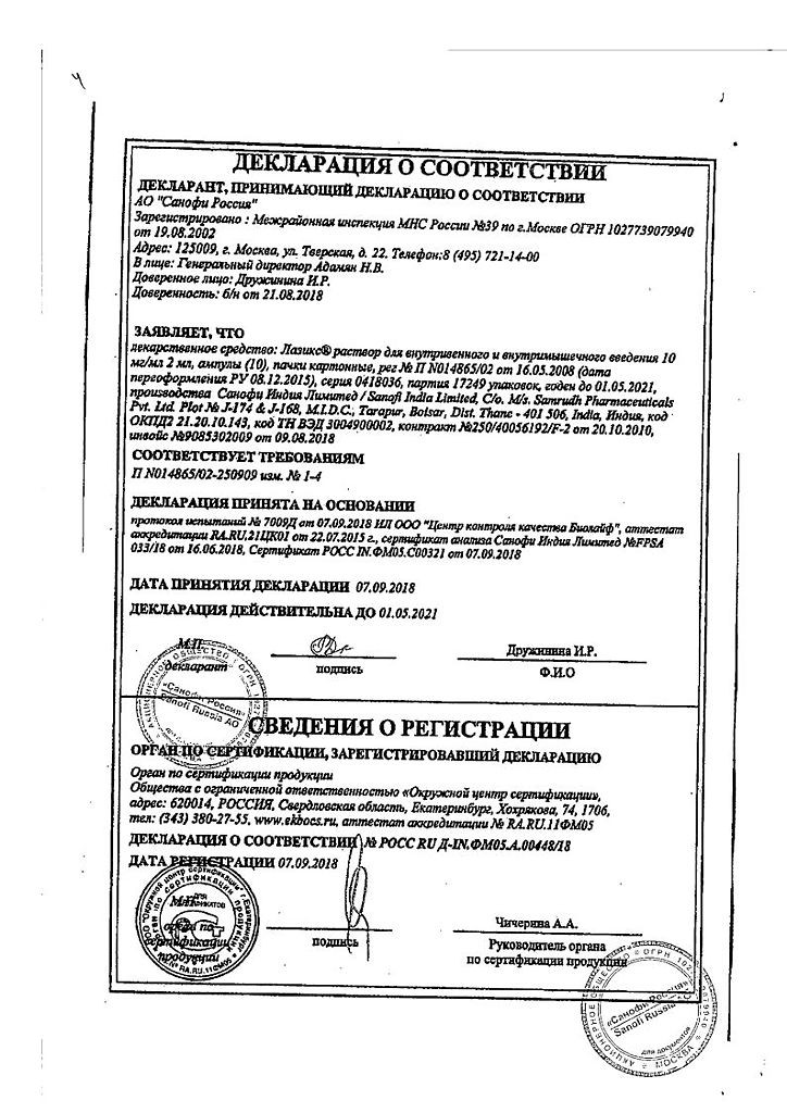 Инструкция Лазикс