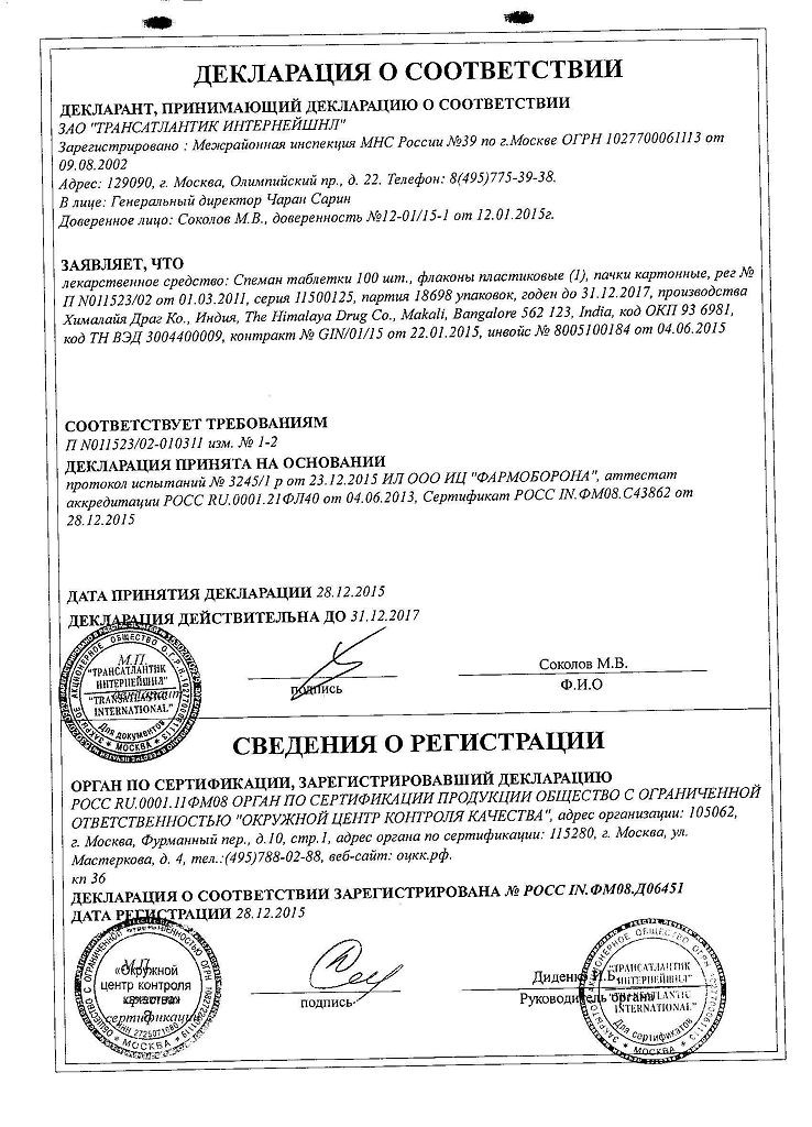 Прежде чем купить Спеман в ближайшей аптеке, нужно обязательно проконсультироваться с врачом. Самолечение опасно для Вашего здоровья.